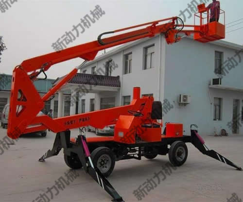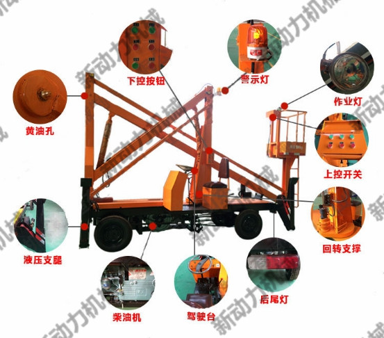 柴油机曲臂式升降平台,以柴油机为动力,行走和升降机部分均使用柴油机,有驾驶座位,行走方便,百公里耗油4L;全自动液压支腿,可单独调节,上下均有操作按钮,控制方便,可旋转360°,具有能跨过障碍物工作的优点,适用于电力检测、广告、厂矿、厂维修、监控、军队等高空作业。