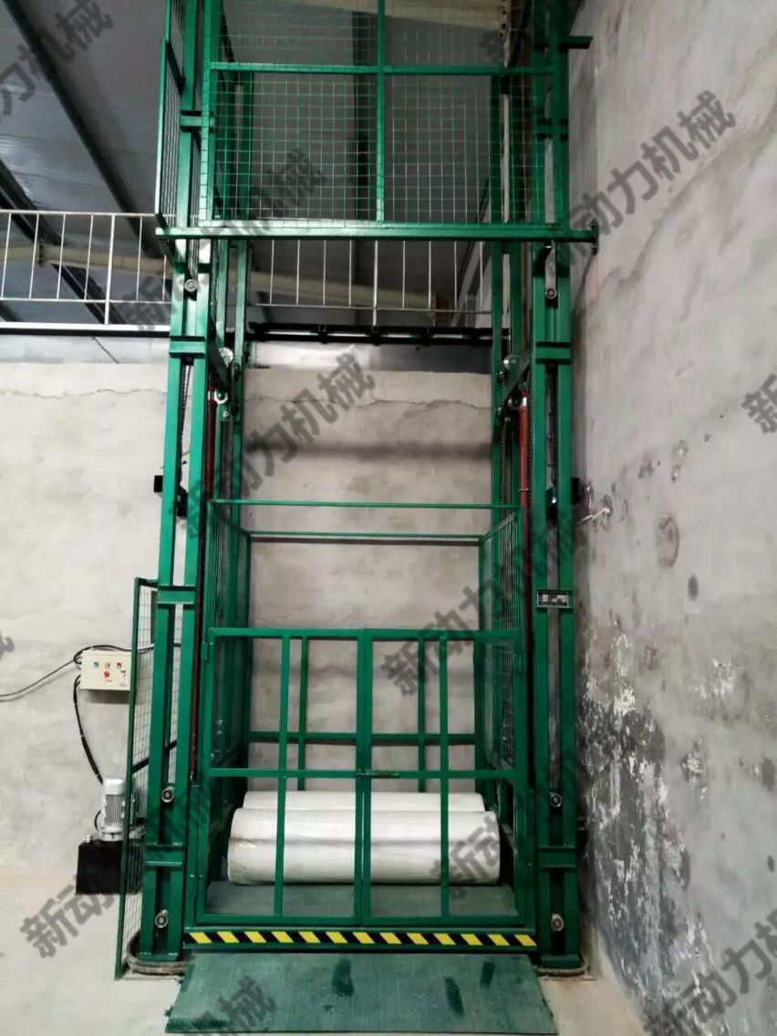 车间内使用双体导轨升降机、台面面积大,可一次性放多吨货物